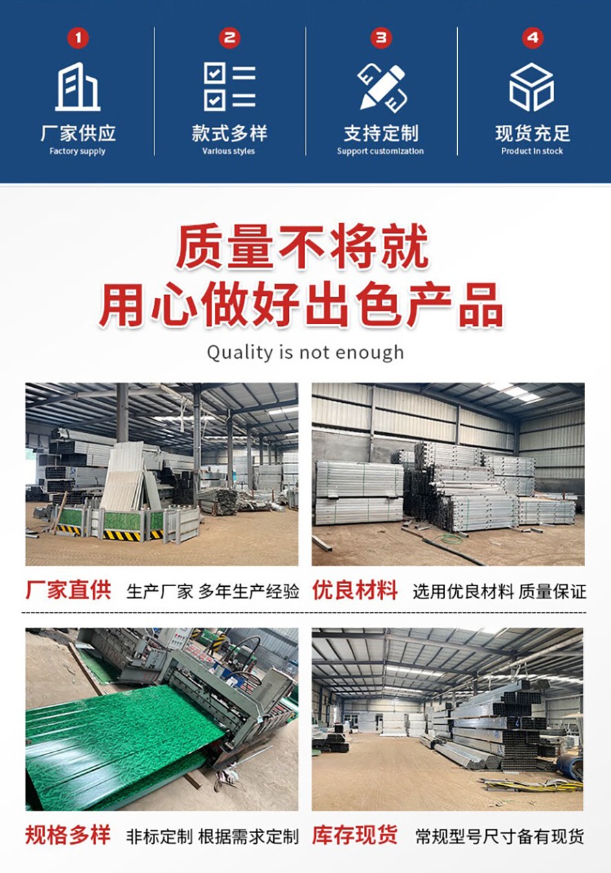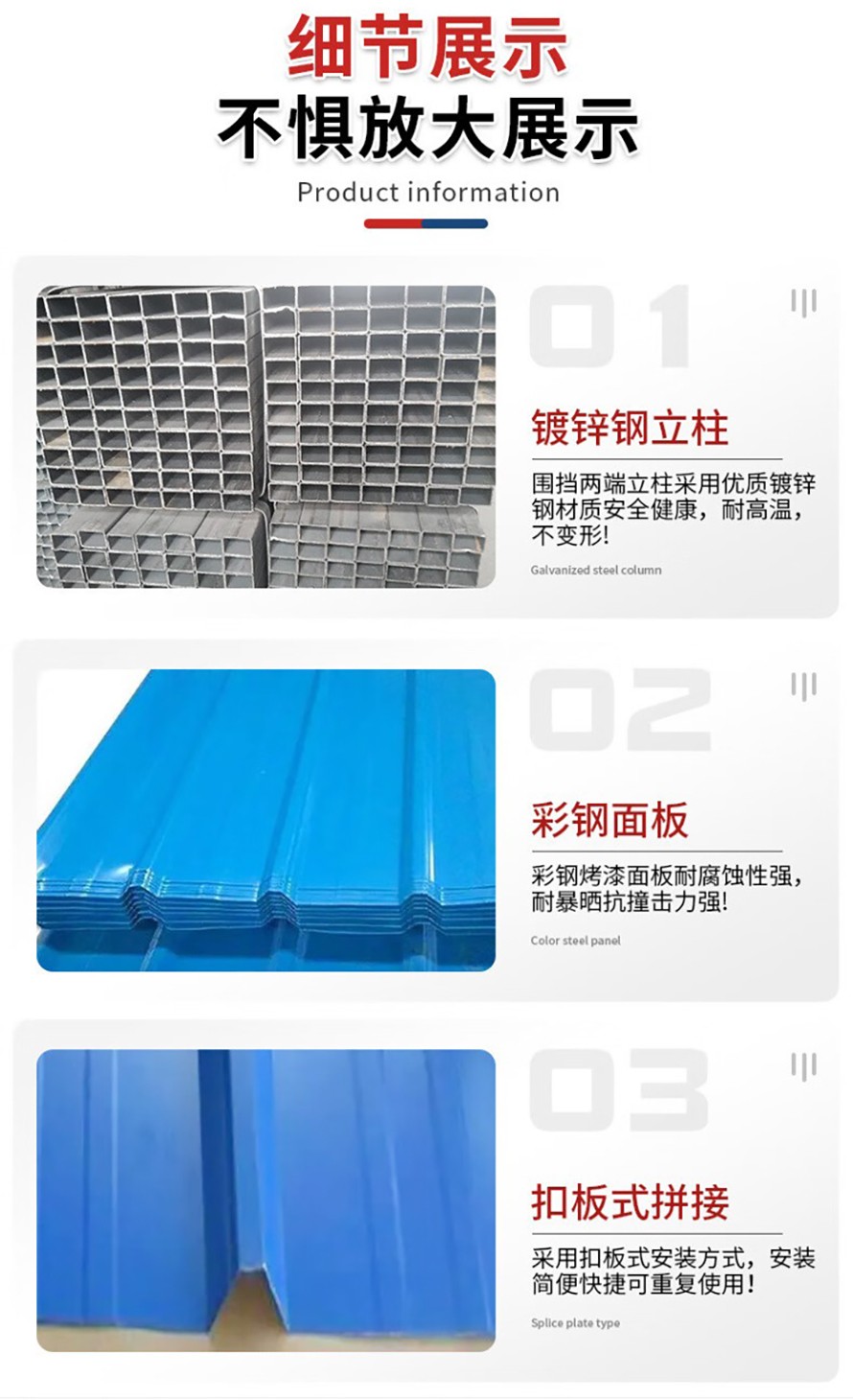 采用國內(nèi)外優(yōu)良技術(shù),引進(jìn)優(yōu)越的金馬全自動(dòng)化噴塑流水線,產(chǎn)品防腐性能好,色彩多樣而且物美價(jià)廉,施工快捷,安全可靠